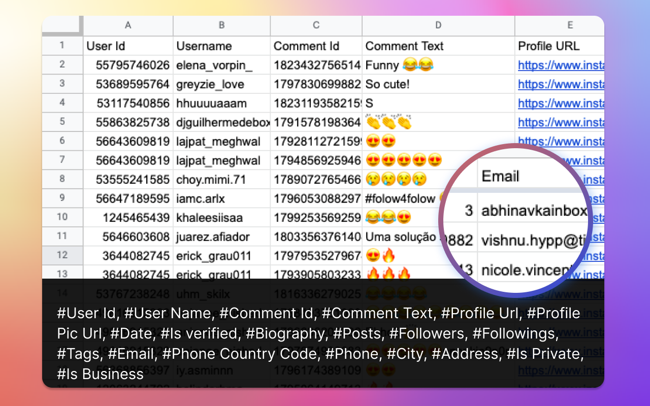 A chrome extension made for people who want to export comments with email from Instagram into Excel
