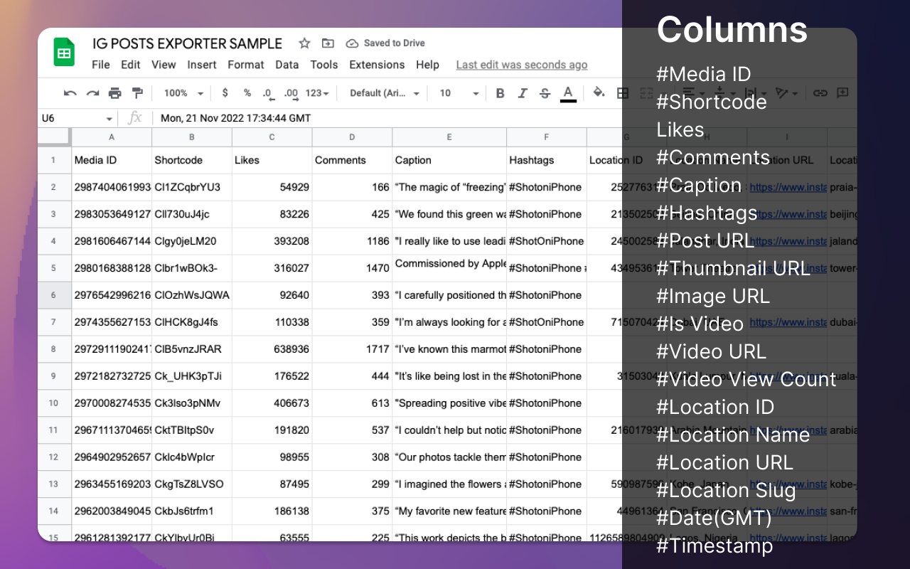 A chrome extension made for people who want to export posts from Instagram into Excel.